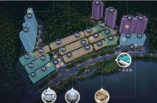 项目采用现代简洁建筑语言,整体通过横向线条与大面积玻璃形成通透景观面,与周边湖山环境保持适度融合。低密度与小高层组合呈现多层次天际线,使建筑群体与山体背景形成协调关系。