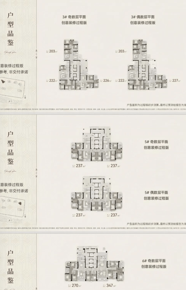 答:主力户型 205-640㎡,涵盖 205㎡、225㎡、228㎡、241㎡、277㎡、348㎡、408㎡、435㎡及 630㎡楼王单位。