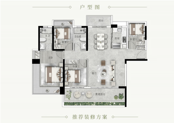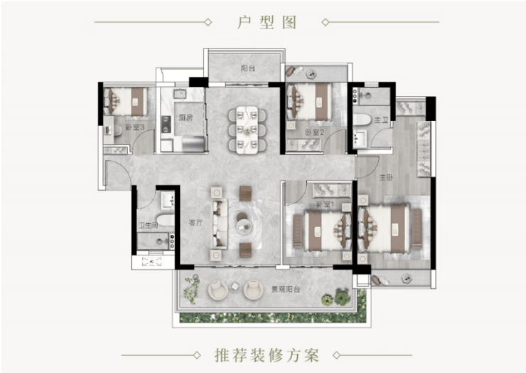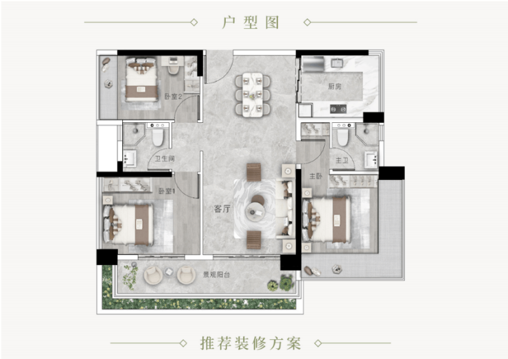 125㎡舒适三房:阔绰三房设计,南北通透,双阳台配置(观景阳台 + 生活阳台),功能分区明确;主卧套房设计,带衣帽间、独立卫浴,私密性强;客厅开间宽敞,适合家庭聚会、休闲,改善居住体验拉满。