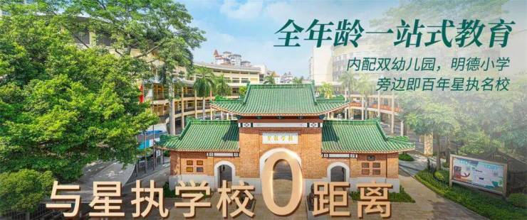 业主子女可免试直接入读明德广地实验学校(小学 + 初中),无需摇号、无需考试,学费(不住校)一年约两万多元,具体以学校当年收费标准为准。