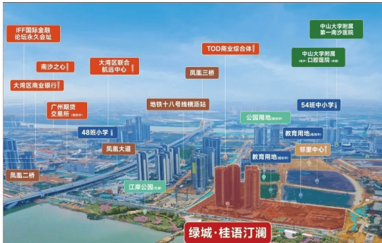 绿城桂语汀澜是绿城在南沙横沥国际金融岛打造的高端住宅项目,以 “一线江景(7.8 公里滨江景观带)+18 号线地铁(横沥站约 800 米)+ 全龄教育(湾区实验学校等)” 为核心卖点。项目由绿城开发,精装交付(2024 年 12 月底分批交付),主打 99-140㎡全四房户型,使用率 90%-93%,凭借品牌品质与核心区位,成为改善型家庭与看重金融岛潜力客群的优选。