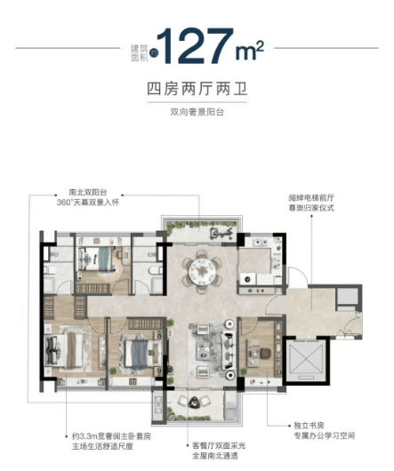 采用超常规围合式布局设计,楼间距达200米,容积率仅为2.0,这在广州市场中实属罕见。主推建面约104-168平方米的全四房户型,两梯两户或两梯三户的设计大大提高了居住舒适度。每个户型都配备了宽敞的阳台,增强了室内外的空间连贯性。特别是其低公摊面积的设计,让每一寸空间都能得到有效利用。