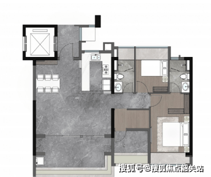 同时,项目采用了 3 户专梯入户的设计,每户都拥有独立的电梯厅空间,这个空间完全可以由业主自主使用,既能作为入户的玄关收纳空间,放置鞋柜、杂物柜等,也能作为入户的过渡空间,保证居家的私密性,相当于给每户都多赠送了一个独立的入户空间,进一步提升了空间的使用率和居住的仪式感,让业主从踏入电梯厅的那一刻,就能感受到专属的尊崇与私密。