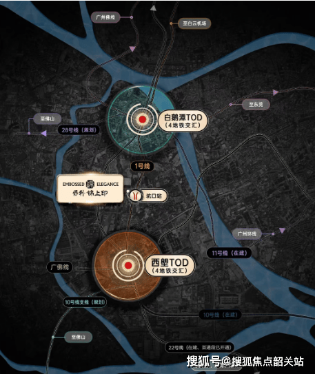 同时,项目前后两站内,还有白鹅潭 TOD(芳村站)、西塱两大交通枢纽,芳村站是地铁 1 号线和 11 号线的换乘站,11 号线是广州的首条环线地铁,能快速通达广州各个核心区域;西塱站是地铁 1 号线、广佛线、10 号线、22 号线的四线换乘枢纽,能快速通达佛山、广州南站、白云机场等核心区域,交通路网纵横交错,能实现畅达全城。