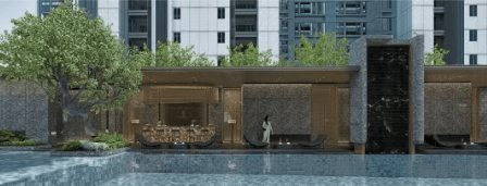 园林中最亮眼的,就是对标纽约第五大道安缦酒店同款打造的约 600㎡奢配泳池,泳池集成了成人泳池、儿童池及按摩池等豪宅泳池的全配置,能满足全龄段的戏水需求,不管是夏天和家人一起游泳戏水,还是闲暇之余在按摩池放松身心,都能轻松实现。同时,泳池边还设置了星级酒店会所吧台,吧台采用了被誉为 “奢石中的爱马仕” 的铂金钻打造,尽显奢华质感,泳池边还打造了高约 5.5 米的仿生自然生态流水瀑布,主材选用了南亚宇宙黑奢石,水流从瀑布倾泻而下,搭配周边的绿植景观,营造了沉浸式的度假氛围,让业主不用远行,在家就能享受五星级度假酒店的泳池体验。