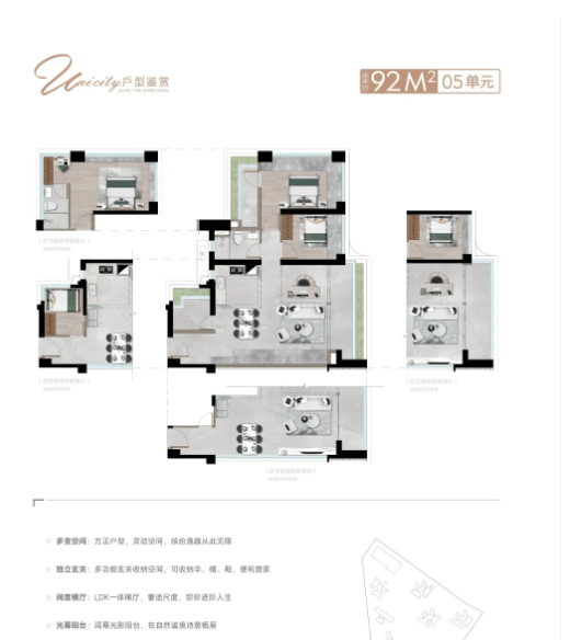 诚汇新都·榕诚湾主打新规户型,使用率超130%,户型设计科学合理,布局方正,空间利用率高,涵盖多种面积段,满足不同家庭结构的居住需求。具体户型设计如下: