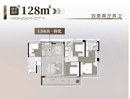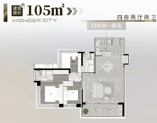 即将加推的二期新品,更是遵循 “超新规” 设计,使用率高达 120%,主推建面约 105㎡与 128㎡四房,进一步降低改善门槛。其中,建面约 105㎡四房做到四开间朝南,LDKB 一体化设计,客厅开间最大可达 6.1 米,餐客厅面积超 30㎡,媲美市面上 150㎡+ 户型;建面约 128㎡四房则实现南北对流,南向面宽超 14 米,搭配 8.65 米 IMAX 阔景阳台,主卧带 270° 全景飘窗与步入式衣帽间,居住舒适度拉满。