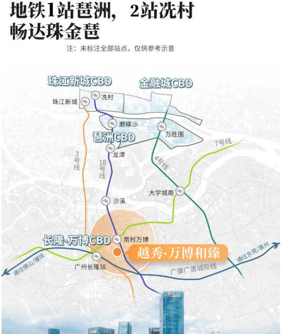 交通方面,项目首推的 CBD 组团距离南村万博地铁站(7 号线 + 18 号线交汇站)约 1.3 公里,骑行接驳便捷。7 号线可直达广州南站、科学城,18 号线作为 “广州南北快线”,一站直达珠江新城、琶洲,轻松串联广州核心商圈;周边番禺大道等主干道环绕,自驾出行也十分顺畅。