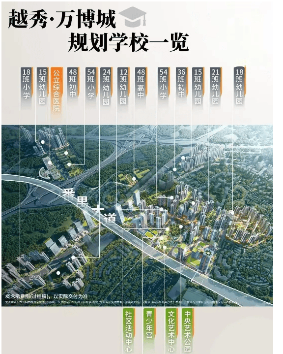 对于家庭购房者而言,教育资源往往是首要考量因素,而越秀・万博城 | 和臻在这一维度堪称 “王牌”。项目整体规划 12 所学校,包括 6 所幼儿园、3 所小学、2 所初中、1 所高中,覆盖从幼儿园到高中的全龄教育,家长无需为孩子升学频繁换房。