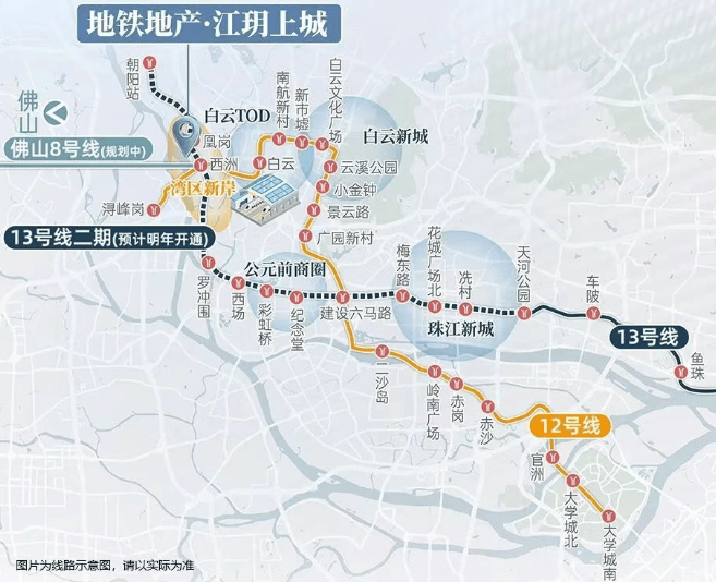 在广州地铁江玥上城的交通规划中,地铁13号线二期扮演着至关重要的角色。这条被誉为“东西向大动脉”的线路,是广州地铁网络中最具价值的线路之一。它串联起黄埔、天河、越秀、荔湾等多个核心区域,是连接广州东部与西部的重要纽带。
