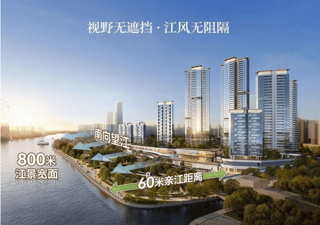 A4: 项目西侧紧邻珠江西航道,距离江边最近处仅约60-80米,拥有约800米的壮阔江岸线,真正实现一线江景。