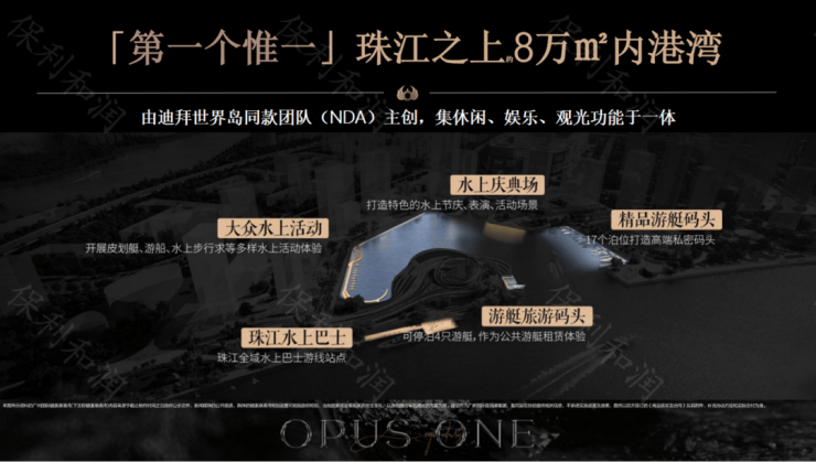 稀缺景观资源:独占珠江唯一内港湾,拥有约700米一线滨江岸线,三江汇流景观不可复制。