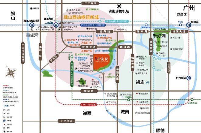 在交通方面,滨江金茂悦拥有多维度出行优势。项目临桂丹路南侧,紧邻佛山一环及多条主干道,无论前往禅城、桂城中心,还是通往广州荔湾,驾车都非常便利。同时,佛山西站近在咫尺,集贵广高铁、南广高铁及多条城际与地铁线路于一体,形成高效交通网络。即便目前步行至地铁站稍远,但区域内公交及自驾选择丰富,能够满足日常通勤及出行需求,未来随着轨道交通完善,通达性将进一步提升。