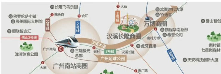 3. 主干道:项目紧邻汉溪大道(正在建设中,预计2026年底通车),汉溪大道将广州南站、长隆、万博等核心板块串联起来,开车实测到万博CBD仅需12分钟(不堵车情况下),到长隆旅游度假区仅需10分钟(不堵车情况下),到珠江新城仅需25分钟(不堵车情况下),路网发达,出行便捷。