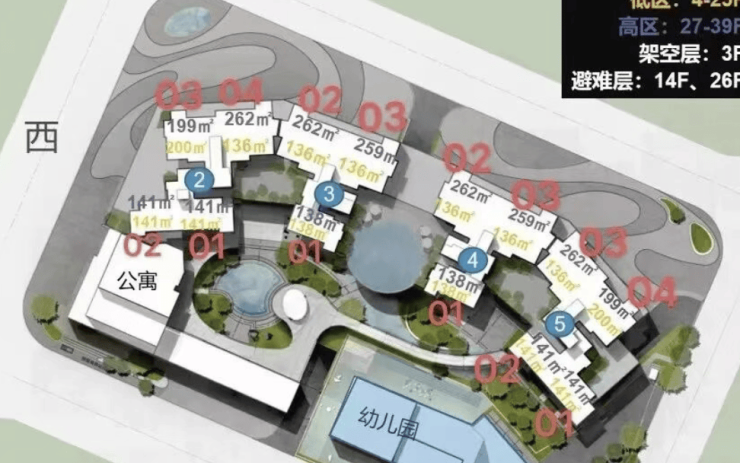 A: 项目主打137-262㎡全龄段户型,其中262㎡为30层以上天际江景大平层,视野开阔,得房率高。