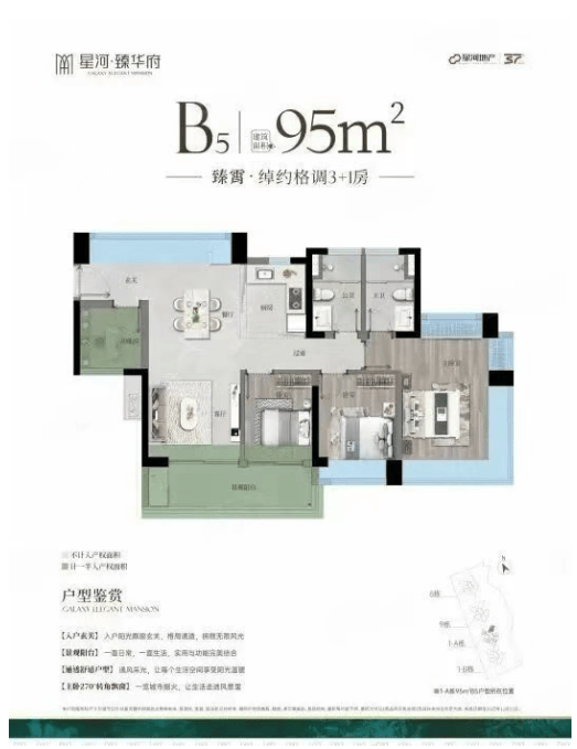 高使用率:户型设计合理,使用率接近100%,尤其是主卧带270°飘窗的设计。