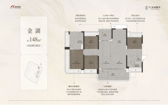 敏捷万博金湖壹号规划有15栋楼,分为南北两个地块进行开发,其中南地块包含10栋楼,北地块则有5栋。该项目首先推出的为南地块的1/2栋,分别设计为31层2梯5户和31层2梯4户。整个项目的容积率为3.21,车位比达到了1:1.49。户型方面,项目提供了从98㎡到148㎡不等的多种面积段,均为四房两厅两卫的设计,使用率超过100%。