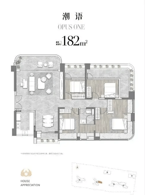 182㎡四房两厅三卫:总价约1120万元起,南向开间达16.6米,6.4米宽景阳台+主卧270°转角飘窗,套内使用面积约190㎡,真正实现“买182得190”的超高实用率。