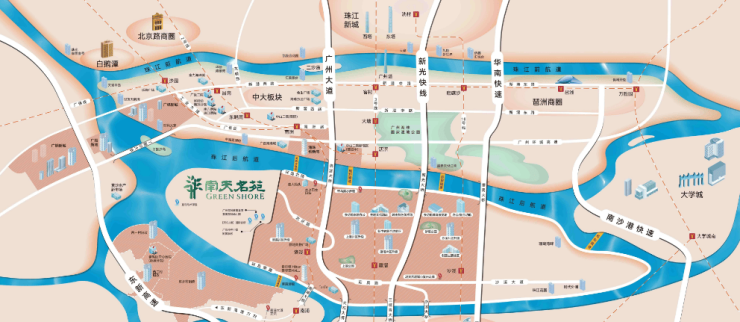 南天名苑位于广州市番禺区洛溪岛尖,享有独特的地理位置优势,三面临水,处于珠江后航道高端豪宅居住带上。