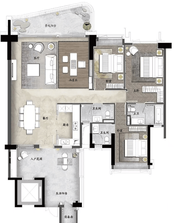 洋房户型:140㎡-270㎡四房双主套