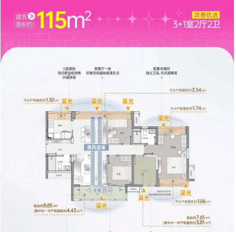 作为绿岛湖的销冠户型,项目约 86-115㎡三四房产品以超 90% 的空间使用率脱颖而出。86㎡三房两厅两卫堪称婚房首选,精巧布局下实现双卫配置,主卧套房设计保障私密;105㎡四房则以超 6 米南向大横厅为亮点,轻松承载三代同堂的居住需求;115㎡改善户型更做到五开间朝南,主卧南北对流双飘窗,阳光与清风时刻相伴。