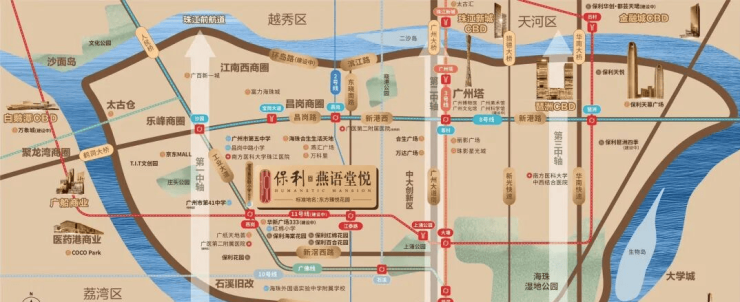 保利燕语堂悦位于广州海珠区核心地段,是广州CBD的重要组成部分。海珠区作为广州的“城市客厅”,近年来发展迅速,已成为集商务、金融、文化、娱乐等多种功能于一体的现代化城区。根据《广州市海珠区国民经济和社会发展第十四个五年规划和2035年远景目标纲要》,海珠区将打造成为“国际消费中心城市核心区、数字生态城、产城融合引领区”,未来发展潜力巨大。