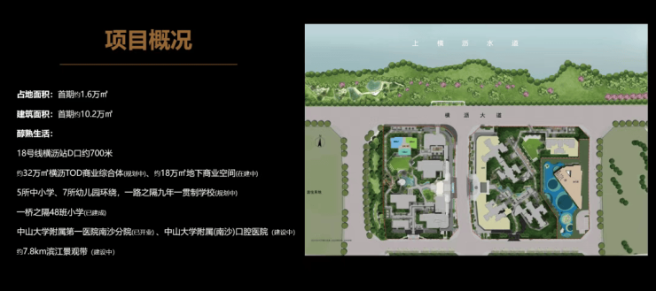 教育资源:项目配建12班幼儿园,对口横沥小学(市一级)、广州大学附属中学南沙实验学校(省一级),直线距离均不超过1公里(具体以教育局公示为准)。