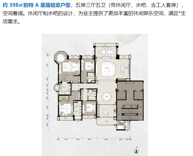 星河湾半岛五号推出了建筑面积从236平方米到398平方米不等的多种户型,每个户型都有其独特之处。例如,约236平方米的A3星盈淡雅户型,采用五房三厅五卫的设计,空间布局合理,功能齐全;而约263平方米的A2星熠暖阳户型,则提供了极目江景的奢阔空间,让业主时刻与自然美景相伴。