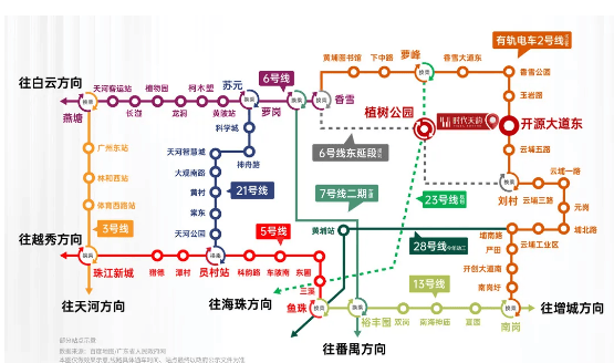 项目位于黄埔科学城核心地段,紧邻广州东进发展主轴,区位优势显著。交通配套上,小区门口就是黄埔有轨电车 2 号线开源大道东站,业主从家门口出发,5 站即可抵达香雪站,无缝接驳地铁 6 号线,无需换乘就能直达天河、海珠、越秀等中心城区。此外,规划中的地铁 6 号线东延段和 23 号线将在附近的植树公园站交汇,未来公共交通出行将更便捷。自驾方面,项目周边有开源大道、开创大道等主干道,可快速接入广州交通网络,满足日常通勤需求。
