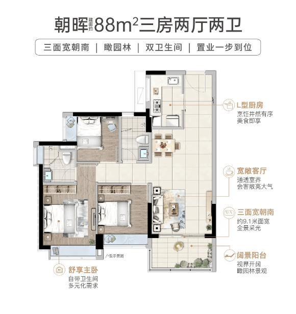 项目目前主要在售 3 栋现房尾货,该楼栋共 46 层高,3 梯 6 户设计,主力户型为 88㎡毛坯三房两卫,总价 199 万任选,现房属性让购房者即买即住,无需漫长等待。同时,项目加推二期 4 号楼新规户型,涵盖 92㎡南向 / 北向三房和 125㎡四房,目前已开放实体板房,购房者可实地考察户型格局与空间尺度。无论是刚需家庭青睐的小三房,还是改善家庭需要的大四房,都能在项目中找到合适的选择,且户型设计注重空间利用率,采光通风良好,居住舒适度高。