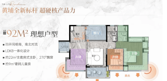 项目采用围合式设计,6 栋 47 层高塔楼,除 2# 楼王两梯四户,其余为三梯六户。现主要在售 2 号楼(92 - 159 方)、3 号楼、5 号楼、6 号楼(81 - 89 - 116 方),加推 7 栋。作为黄埔首个使用率超 100% 的项目,无论是刚需还是改善需求,都能在这里找到合适的户型,为业主提供更多的空间享受。