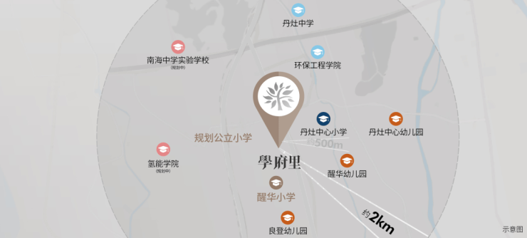 约800米范围内两大幼儿园:醒华幼儿园、丹灶中心幼儿园🔔🔔约2km达丹灶中学、12年制公立学校-南海中学实验学校(今年9月开学)
