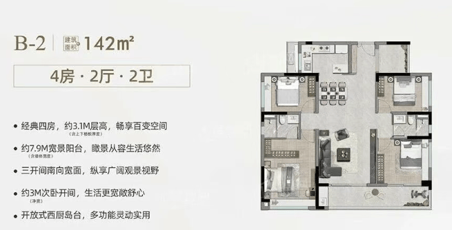 品山142㎡:创意百变4+1房,功能分区明确,生活场景多元;