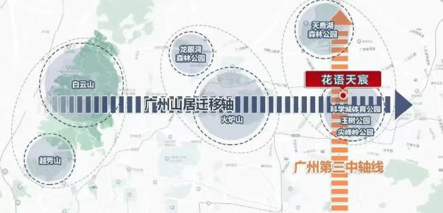 花语天宸所在区域,正处于广州城市发展第三中轴——科技创新轴的核心腹地。北接黄埔科学城,南连天河智慧城,两大国家级科技产业高地在此交汇,不仅汇聚了华为、小鹏、粤芯半导体等龙头企业,更承载着广州未来产业升级与人口导入的重要使命。作为双城之间唯一兼具生态资源与城市配套的居住板块,花语天宸精准卡位城市发展主脉,成为高净值人群资产配置与生活升级的理想选择。