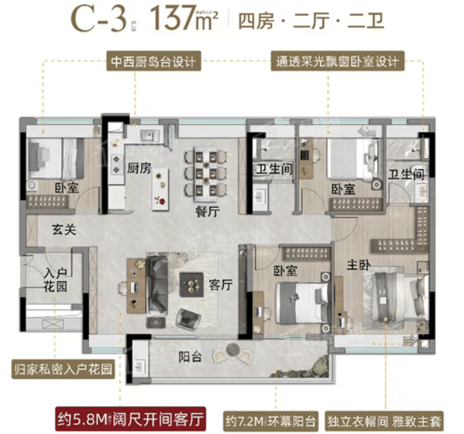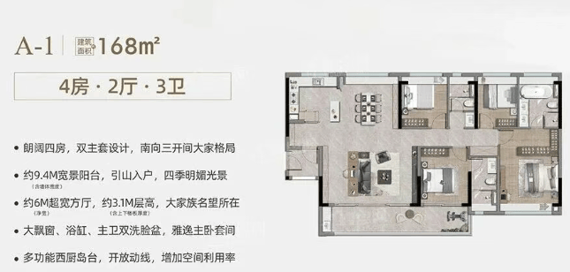 御山168㎡:双主套王牌四房,奢阔尺度匹配塔尖人士身份。