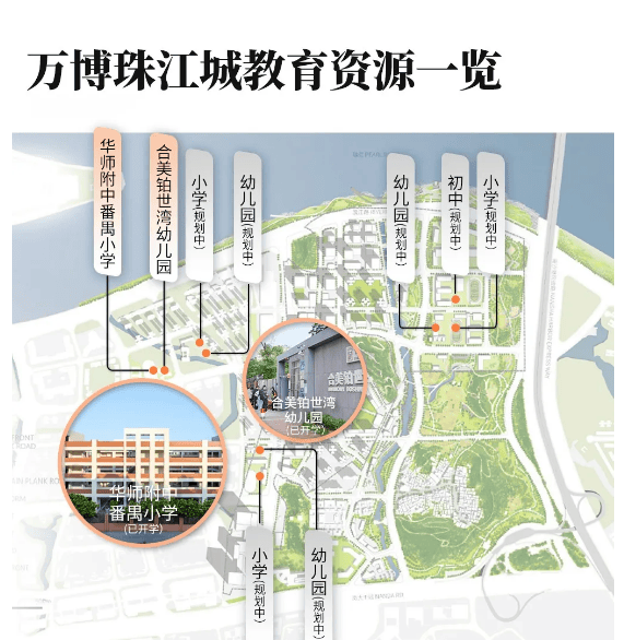 其中最受关注的,当属项目内配建的华师附中番禺小学。这所学校是广东省一级学校——华南师范大学附属中学的合作办学项目,依托华师附中强大的教育资源和师资力量,办学起点极高。根据项目官方与教育部门的协议,华师附中番禺小学仅对万博珠江城业主子女招生,这意味着业主的孩子不仅能就近入学,还能享受“纯粹的生源”,为未来的学习成长奠定坚实的基础。