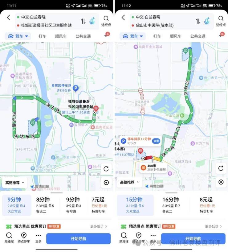 远一点的佛山市中医院【三甲医院】约3.1km,开车15分钟左右