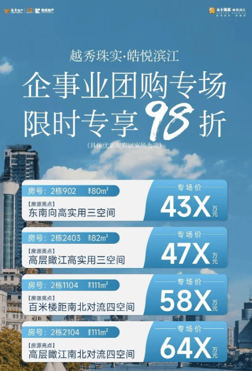⭕越秀珠实·皓悦滨江开发商售楼部热线:400-996-2582(开发商直连,解答项目规划、购房政策等问题)