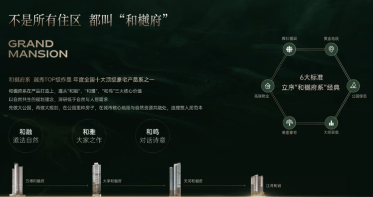 现代滨水美学,以“和樾府系、低密3.43、香槟金塔冠”重塑江岸天际线