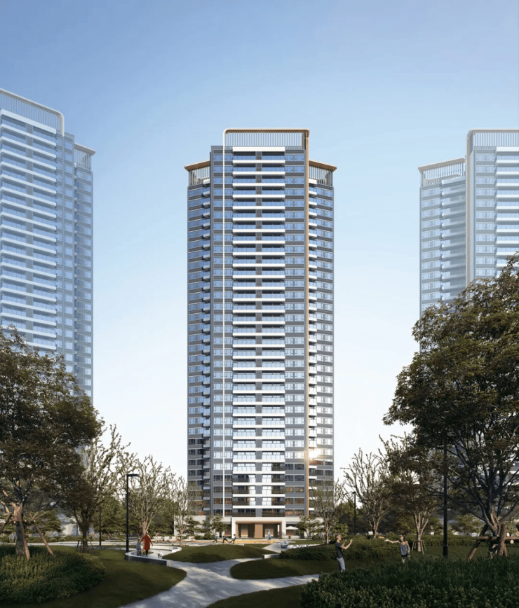 项目占地约 3.45 万平方米,总建筑面积 17 万平方米左右,由 7 栋 100 米高的住宅楼组成,分两期开发,容积率 3.6,总户数约 1180 户,梯户比为一期 2 梯 6 户,二期 2 梯 4 户,车位比 1:1.2,保障业主停车需求。项目主打 72-143㎡全生命周期户型,设计细节兼顾实用性与灵活性,实用率均超 95%,部分户型高达 100%,在同区域极具竞争力。