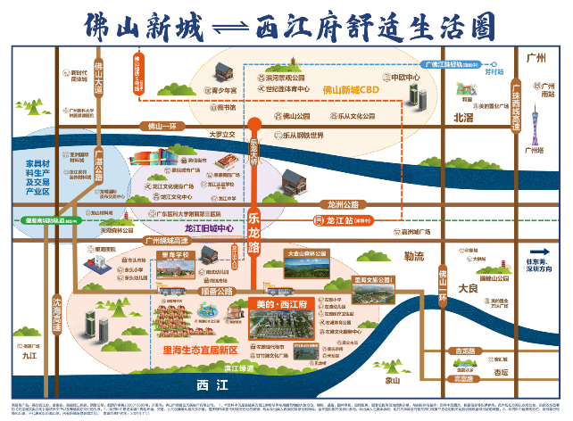 7、大城规模与配套:顺德龙江 - 美的西江府售楼处电话:400-828-5661 成熟江畔宜居大城