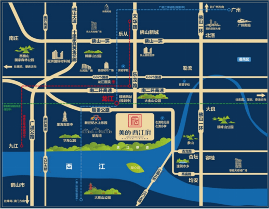 6、交通便捷优势:顺德龙江 - 美的西江府售楼处电话:400-828-5661 畅达广佛的交通枢纽