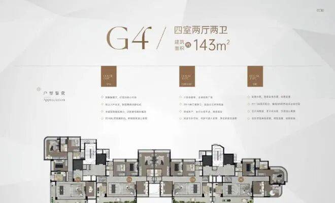 项目仅推约143㎡单一面积段,分两类产品: