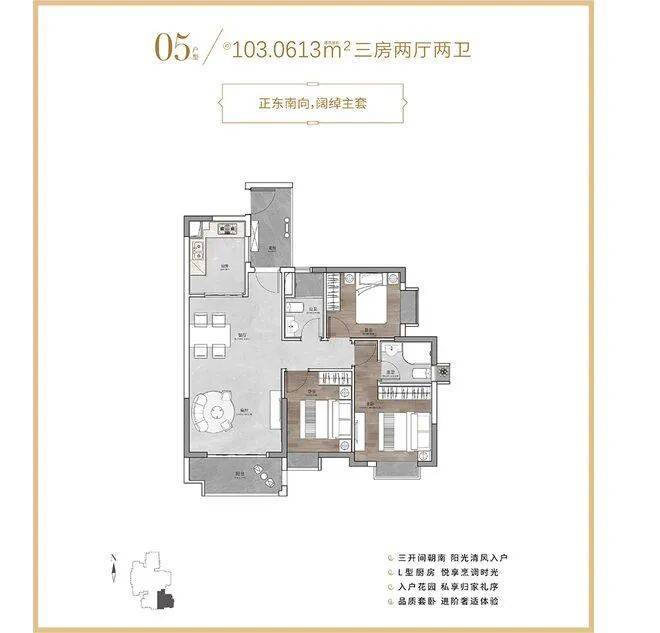户型设计上充分考虑家庭居住需求,79㎡两房户型适合刚需家庭,空间紧凑无浪费,395万起的总价门槛在海珠核心区具备竞争力;103㎡三房户型则能满足刚改家庭的居住升级需求,515万起的总价对应成熟配套与现楼优势,性价比突出。所有户型均朝南向布局,保证充足采光与良好通风,契合广州气候特点与居住习惯。