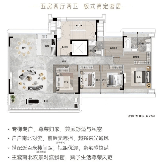 建面约171㎡奢适五房:专梯入户,尊享私密空间,五房设计适合三代同堂。