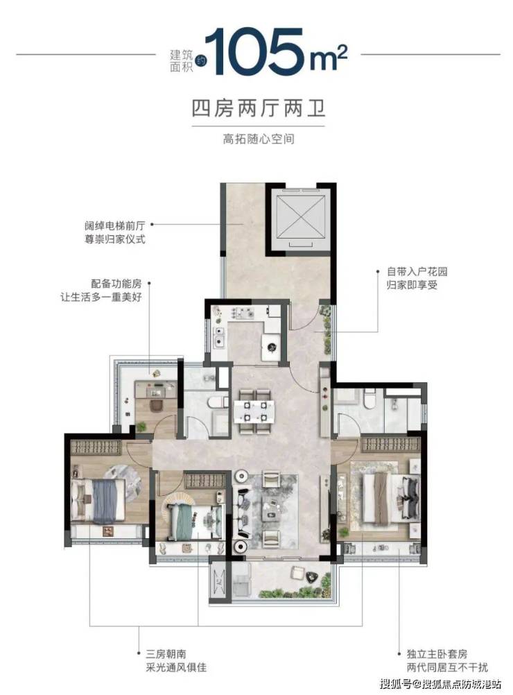 104㎡四房:四开间朝南,独立入户花园,私密性高;