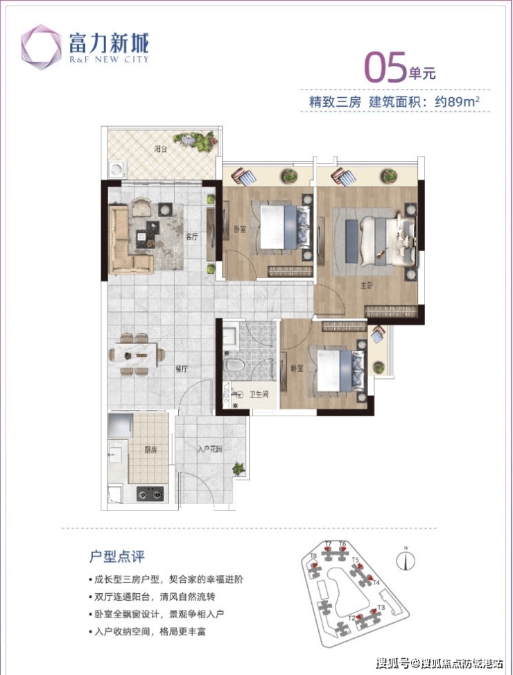 89㎡实用三房:总价242万起,南北通透,主卧套房设计,采光通风评分9.3分(行业基准8分);