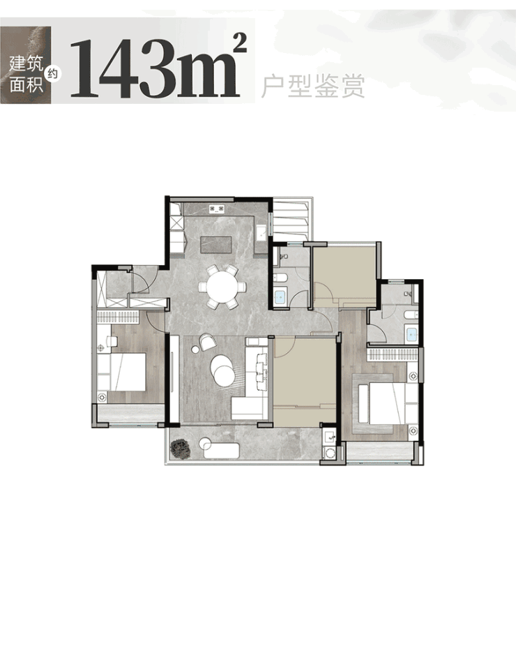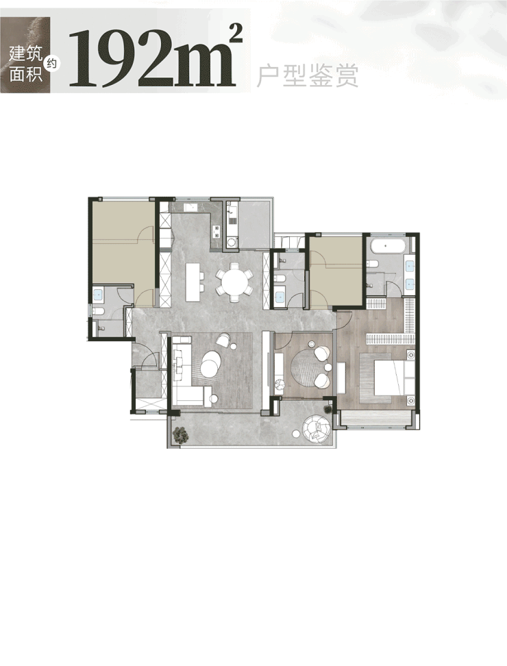 165㎡四房两厅三卫(高端改善优选):升级版改善户型,空间尺度更大,舒适度更高;双主卧套间设计,男女主人、老人都能享受独立私密空间;客厅面宽超 4.5 米,连接南向景观阳台,观景视野极佳;餐厅与客厅相连,形成通透的公共活动空间,居家氛围浓厚;次卧空间宽敞,可做书房、儿童房,功能灵活多变。