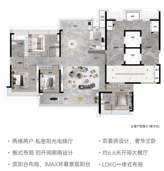 作为项目的压轴之作,这款产品以“空中别墅”概念打造,超大面积带来IMAX级视野,远眺长隆盛景,近揽园林四季。不仅满足居住,更是一种身份与品位的象征。