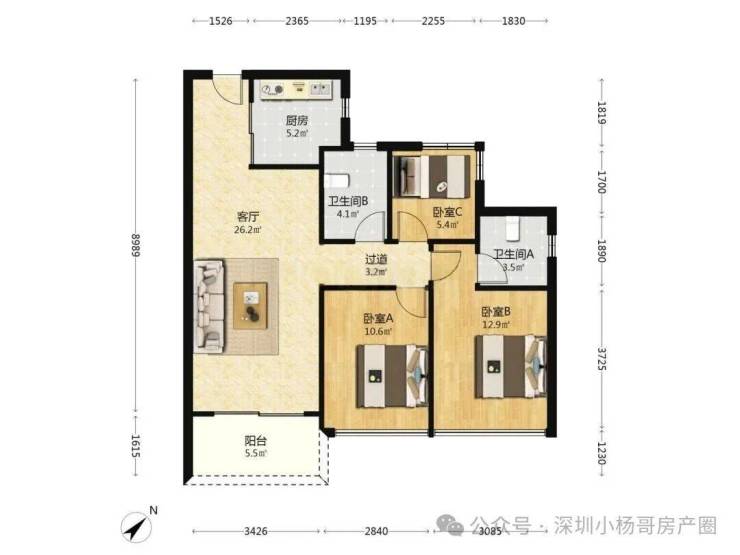 户型设计是中海汇德理的一大亮点。主力产品精准匹配深圳刚需及改善家庭需求:81平方米三房,南北通透,三卧室均具备实用面积,主卧达14.5平方米,公卫采用三段式分离,提升使用效率;94平方米三房两卫,竖厅布局,入户玄关增强私密性,双卫设计满足多孩家庭需求,阳台面积达5.5平方米,视野开阔;111平方米四房,LDKB一体化设计,客厅开间达3.575米,四开间朝南,采光面极佳,阳台面积近6平方米,适合打造家庭休闲空间。所有户型得房率稳定在78%左右,远高于深圳同类高层住宅平均水平。这些设计并非纸上谈兵,而是基于数千户深圳家庭调研后的成果。
